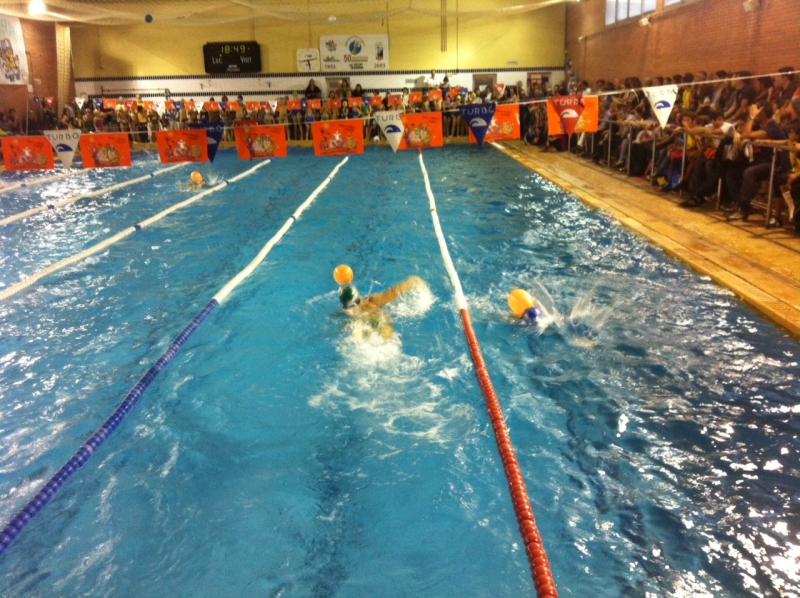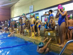 És per això que es van formar sis equips on estaven barrejats nens i nenes dels 3 clubs participants sense distinció d’edat. Han nedat 4 relleus de crol, esquena, peus de esquena amb els braços de fletxa i 25m amb un globus.