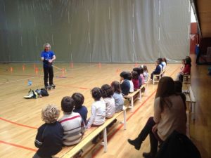 Dos dies abans, els Benjamins de l’ Horta, alunnes de 6è de la mateixa escola; Albert, Jan, Jaume, Lucas, Òscar i Roger, amb la col.laboració especial de l’ Àlex i el Soren, van fer una demostració d’ hoquei patins als companys de P4 i P5, dintre del Projecte esports d’equip.