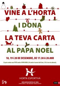 Els propers dies 18, 19 i 20 de desembre tindrem al Pare Noel a les nostres instal·lacions per recollir totes les cartes. A més, ensenyant el carnet de la Unió Esportiva d’Horta o Horta Esportiva, els petits de la casa es podran fer una foto amb ell i emportar-se-la a casa. El preu de la fotografia és de 3 euros pels socis/abonats i 5 euros per la resta.