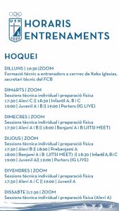 HOQUEI: Dilluns 4 a les 10:30h per ZOOM. Formació técnic a entrenadors a carrrec de Keko Iglesias, secretari técnic del FCB.