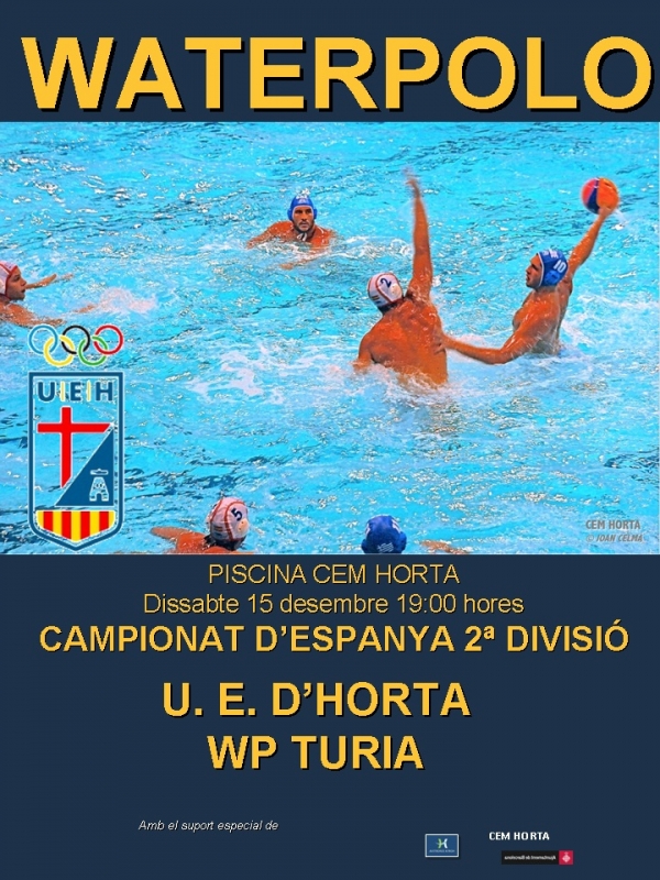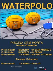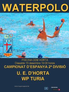 Aquest proper cap de setmana es presenta ple de partits amb coincidències horàries que faran tinguem que anar d’una piscina a l’altre.L’equip absolut masculí te un dur enfrontament amb un dels clars aspirants a l’ascens de categoria, els valencians del WP Túria segur que ens posaran les coses complicades, bona pedra de toc pel nostre equip per tal de calibrar les nostres possibilitats en aquesta lliga, a partir de les 19h a la piscina de 33.A la mateixa hora però en la piscina de 25 les noies tindran una nova oportunitat de sumar un altre triomf en aquest cas davant el WP UNIV Autònoma, un nou triomf ens consolidaria a la part alta de la classificació.Abans dels partits dels absoluts els cadets i els alevins B jugaran a partir de les 17:15h, el cadet ho farà a la piscina de 33 i els alevins a la de 25.Al matí l’equip aleví A visita al Mediterrani en un partit on es decidirà la primera plaça del grup, qui guanyi ocuparà aquesta posició, un empat deixaria en la diferència de gols la decisió final, interessant partit que es jugarà demà dissabte a partir de les 9h a la piscina de Regente Mendieta.