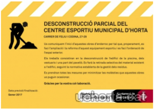 El tan esperat projecte de la segona fase del CEM Horta, ja ha vist les seves primeres actuacions. Estem en la primera d’elles on, tal com ja es va informar, s’inicia amb el procés de desconstrucció de les antigues instal·lacions. Actualment, el projecte de la fase de construcció de les noves instal·lacions, es troba en el període final del procés d’adjudicació de les obres.