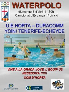 L’equip absolut ha superat amb dificultat la primera de les dues finals d’aquest cap de setmana, l’equip basc de l’Askartza ha presentat batalla tot i no jugar-se res i ens ha posat les coses ben difícils, aixó i els nervis han fet que no fos un bon partit dels nostres jugadors, tot i aixó i el que voliem eren els tres punts i aixó si que ho hem aconseguit, de moment deixem el darrer lloc de la classificació i si demà sumem els tres punts sortirem de la zona de descens, avui la Grada Jove com ja ens té acostumats ha estat de 10 i demà i tornarà, us esperem a tots per animar a l’equip en aquest partit que ens pot treure de la zona de descens quan faltaran dos partits per acabar la lliga.