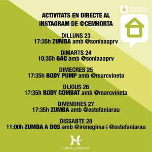 Programació setmana 23-29 març d’activitats en directe al perfil d’Instagram de @cemhorta