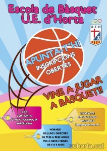 L’escola de Bàsquet de la U. E. d’Horta és ja un referent al barri després de molt anys en la tasca d’ensenyar els primeres passos en el món del bàsquet amb el millor nivell esportiu i les millor instal·lacions. L’educació esportiva mitjançant jocs i la introducció dels valors (recollits al codi de bones pràctiques) son els dos pilars de la nostra Escola.